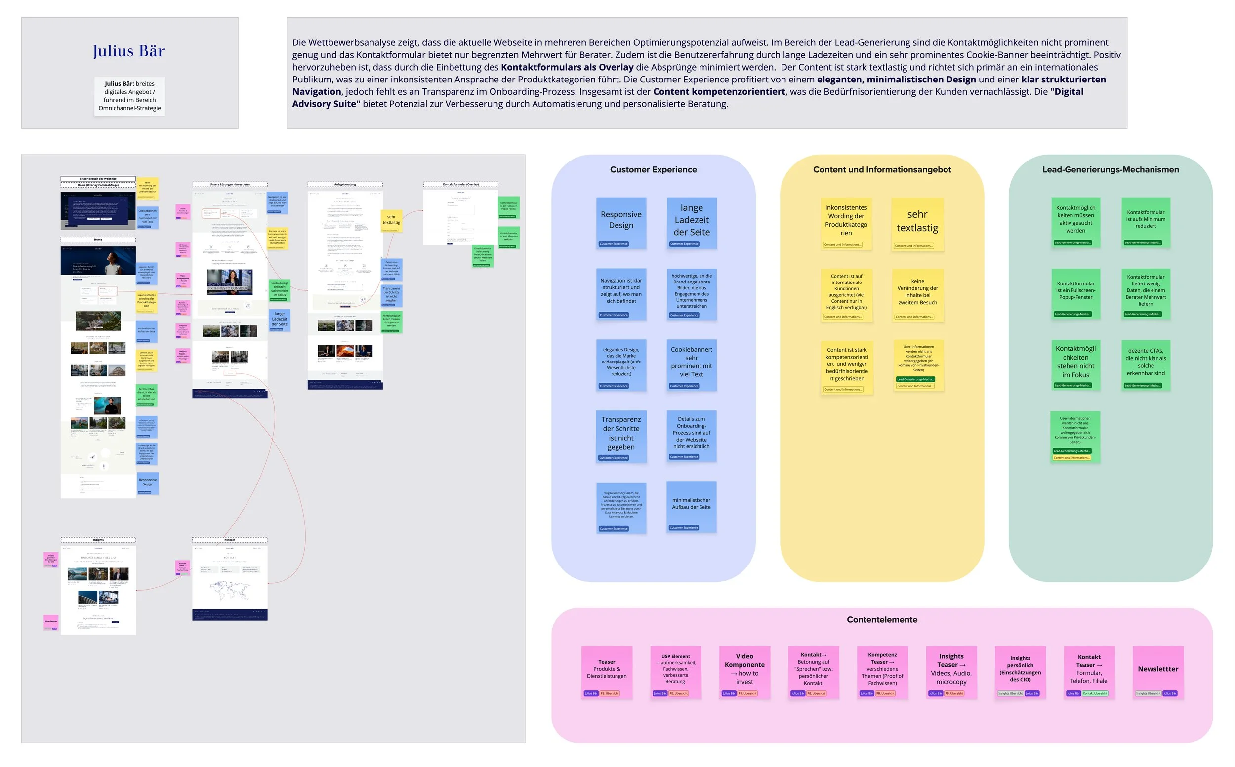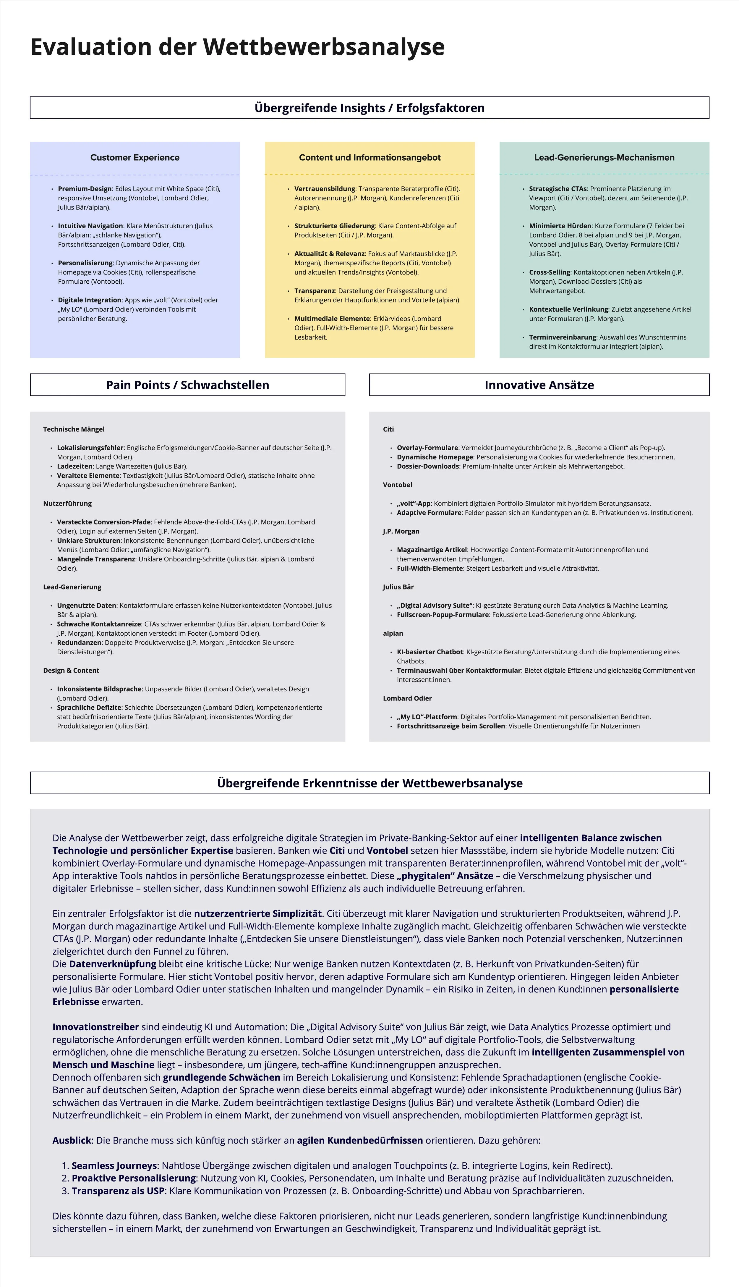 Julius Bär, Vontobel, Lombard Odier, Citi, JP Morgan — the best players all lead with life moments, not product lists. They earn trust through clarity, proof points, and a seamless blend of self-service and human contact. The pattern was clear: curated experiences convert, generic pages don't.