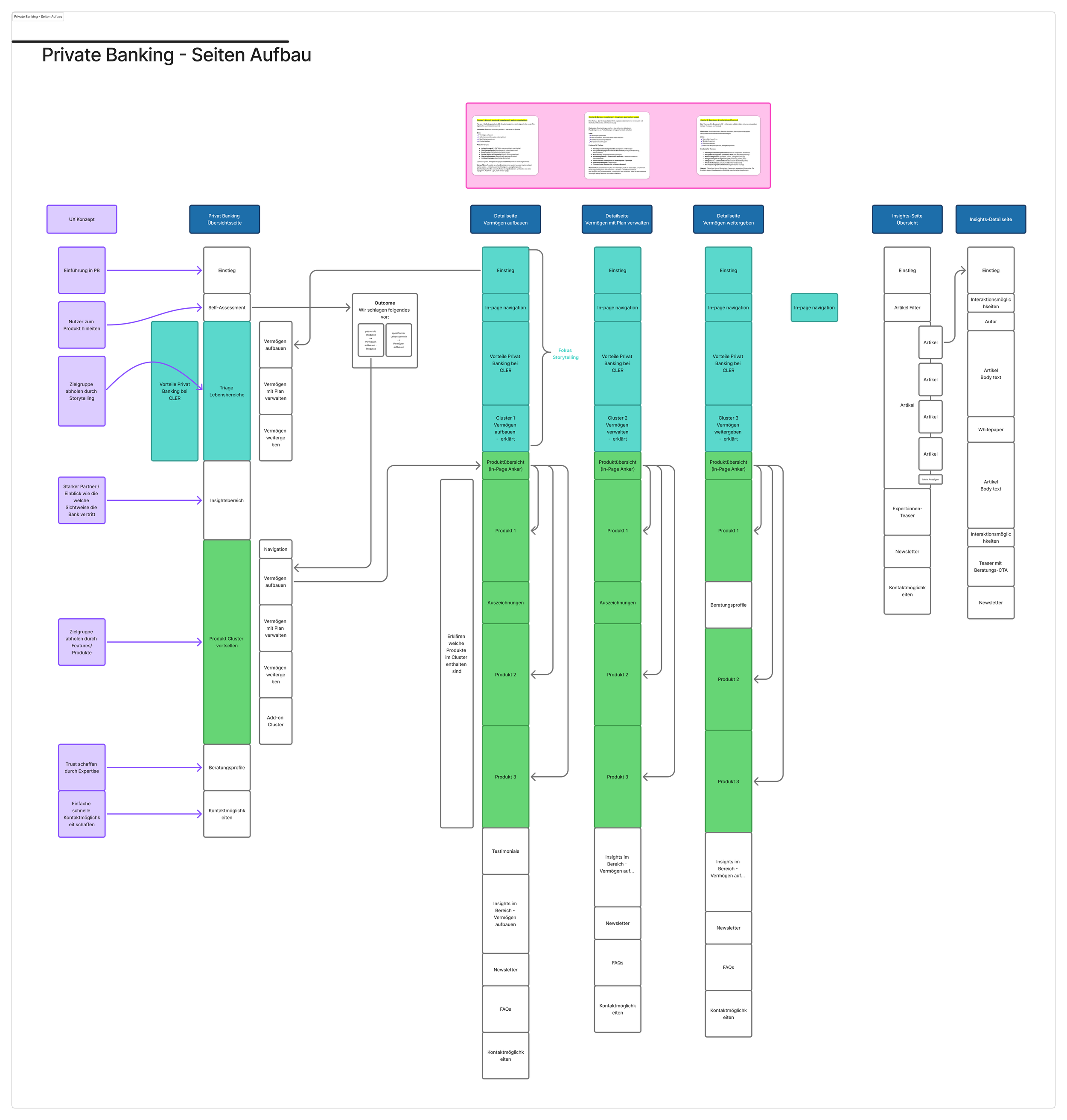 Formulating what the Private Banking section needs to achieve — for the business and for the user.